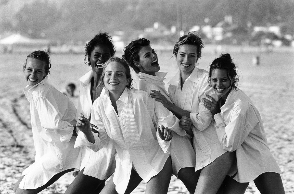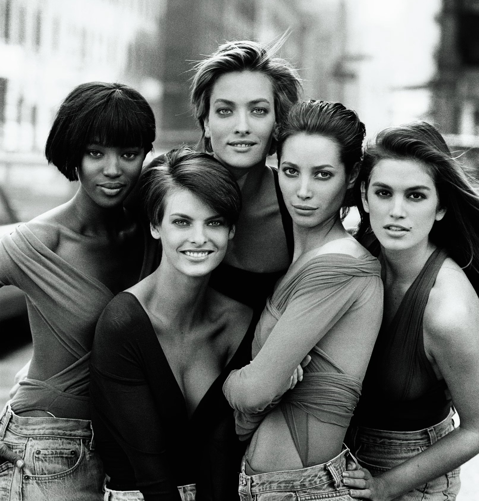 Naomi Campbell, Linda Evangelista, Tatjana Patitz, Christy Turlington, and Cindy Crawford shot by Lindbergh in 1990 for British Vogue