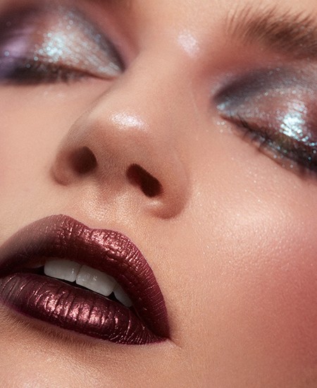 By celebrating contrast and structure. Luminous skin, softly smoked eyes, clean brows, and warmth in the complexion always look powerful.
