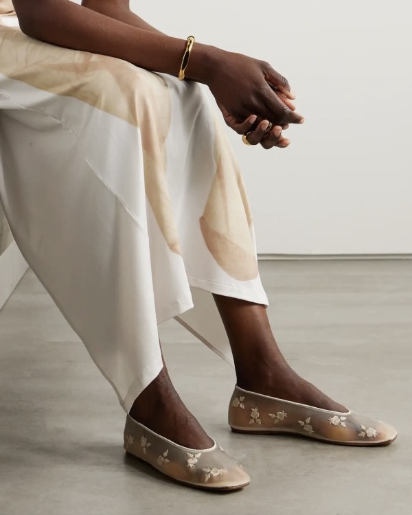 Magda Butrym Leather-Trimmed Embroidered Mesh Ballet Flats, $1,150
