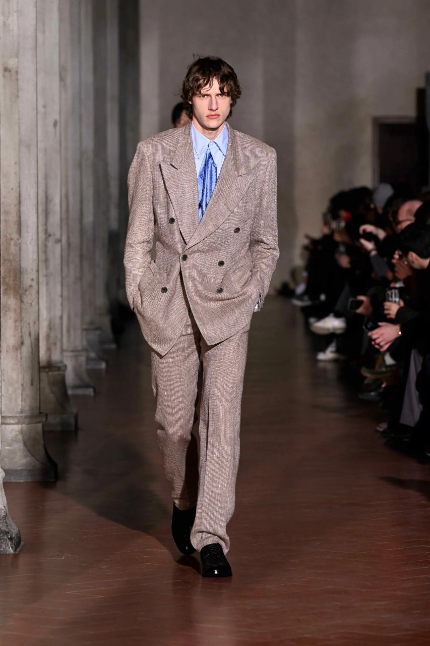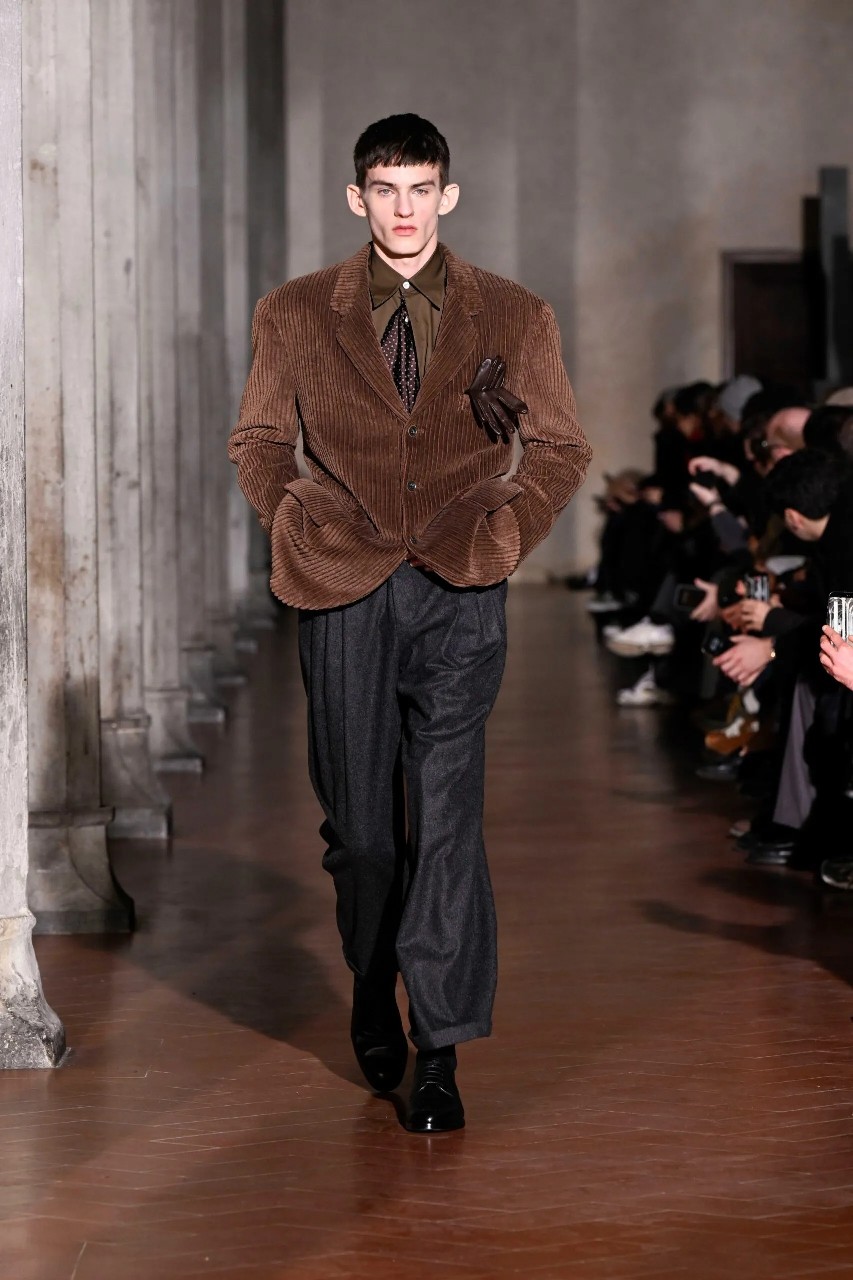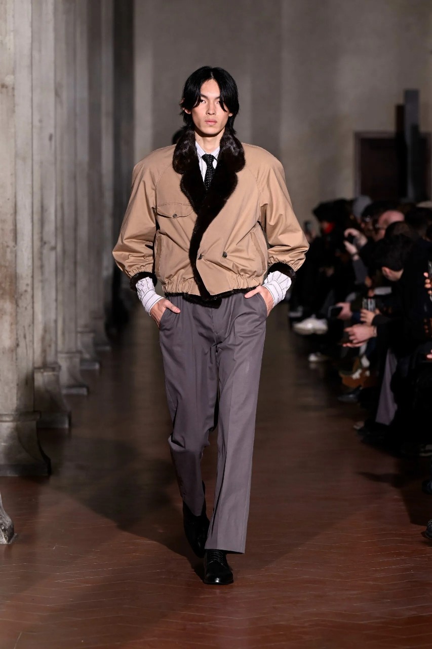 If Japanese tailoring is known for discipline and Italian tailoring for sensuality, Otsuki refuses the binary. His Fall collection balanced both perspectives simultaneously, precision without rigidity, fluidity without collapse. As applause filled the Florentine hall, it was clear: this was not merely a successful debut. It was a designer positioning himself as a thoughtful mediator between cultures, histories, and the evolving language of menswear.