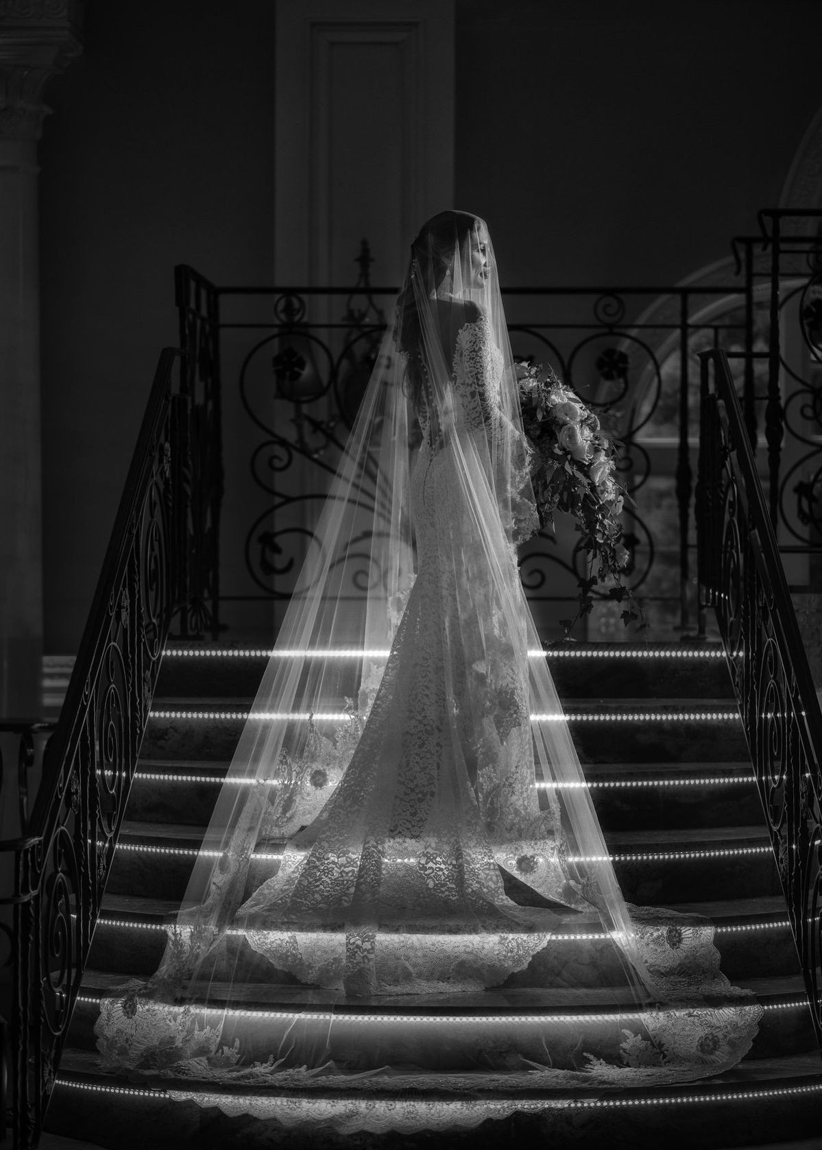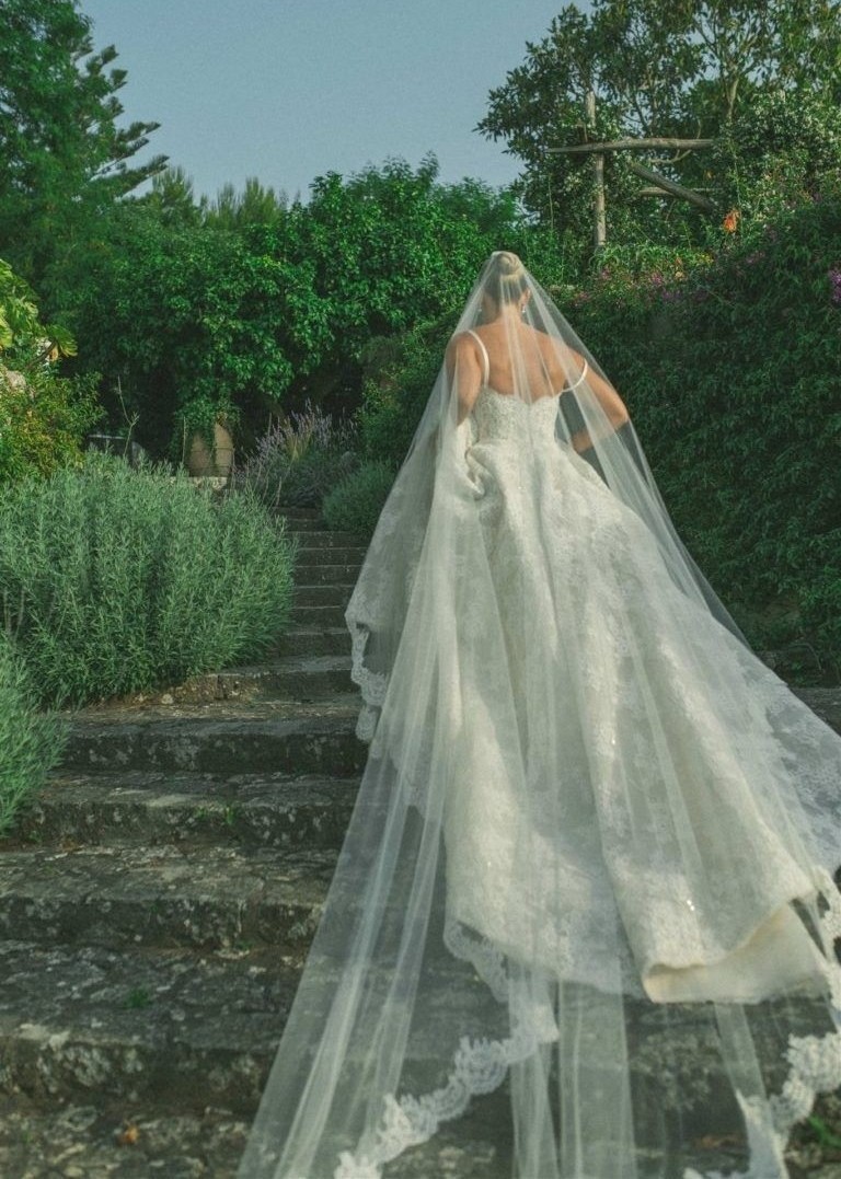 Craving unmistakable bridal drama? A cathedral-length veil paired with a voluminous ball gown is the ultimate statement. This powerful combination is made for a truly grand entrance, cinematic, regal, and impossible to forget. The dramatic length of the veil enhances the spectacle while perfectly balancing the fullness of the skirt, creating a look that feels both commanding and breathtaking.