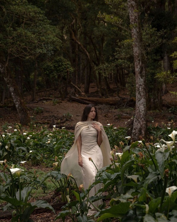 For the intimate church ceremony and our photos at Volcán Barú, I wanted a look that stood in deliberate contrast to my Kyha drop-waist ball gown, Spanish lace bolero, and mantilla veil. I discovered ABAPPUR a Brazilian brand founded by two sisters, through Instagram, after seeing a gown they had created for another bride. I was immediately drawn to the soulfulness of their work.