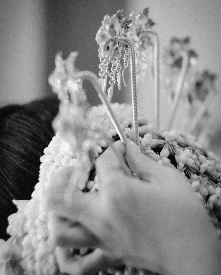 Dressed in a finely embroidered kebaya paired with symbolic batik kain, the bride becomes raja putri sedina, a queen for a day. Batik motifs such as Sido Mulyo (prosperity) or Truntum (everlasting love) are never decorative; they are philosophical declarations.