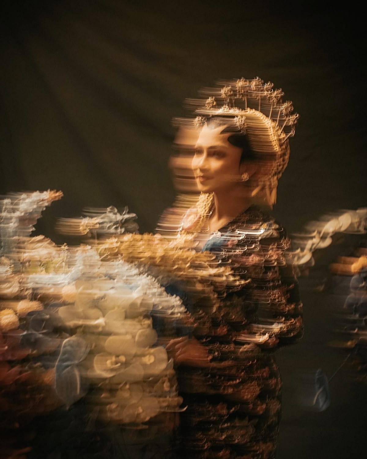 Her look is completed with paes makeup, whose sculpted forehead patterns vary between Yogyakarta and Surakarta (Solo) traditions.
