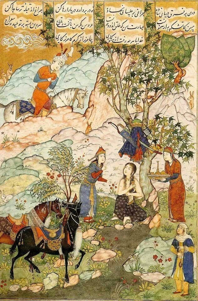 “Shirin Examines Khusraws Portrait”, late 15th century Iran, plate 2, Khamsa of Nizami, Arthur Sackler Gallery, Smithsonian Institution, s1986.140