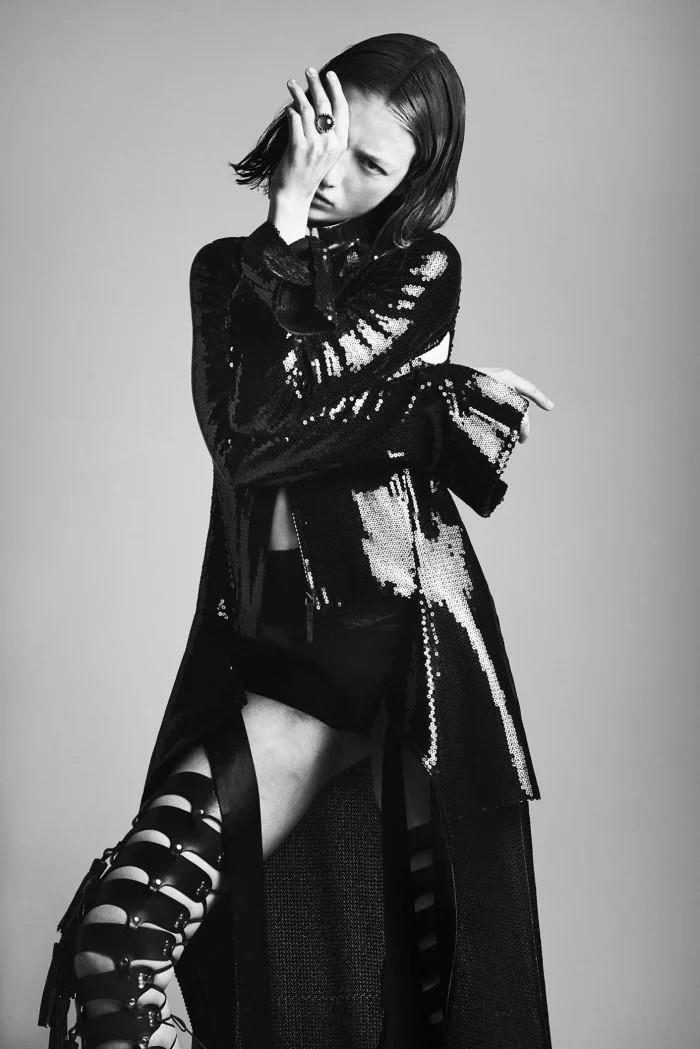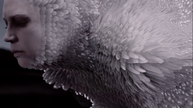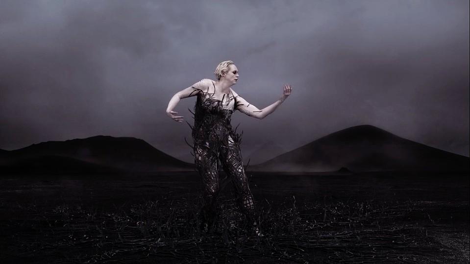 English actor and model Gwendoline Christie is styled in avant-garde creations by Iris van Herpen