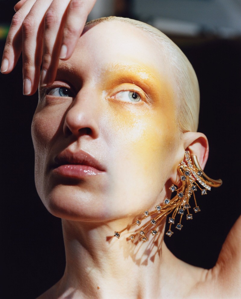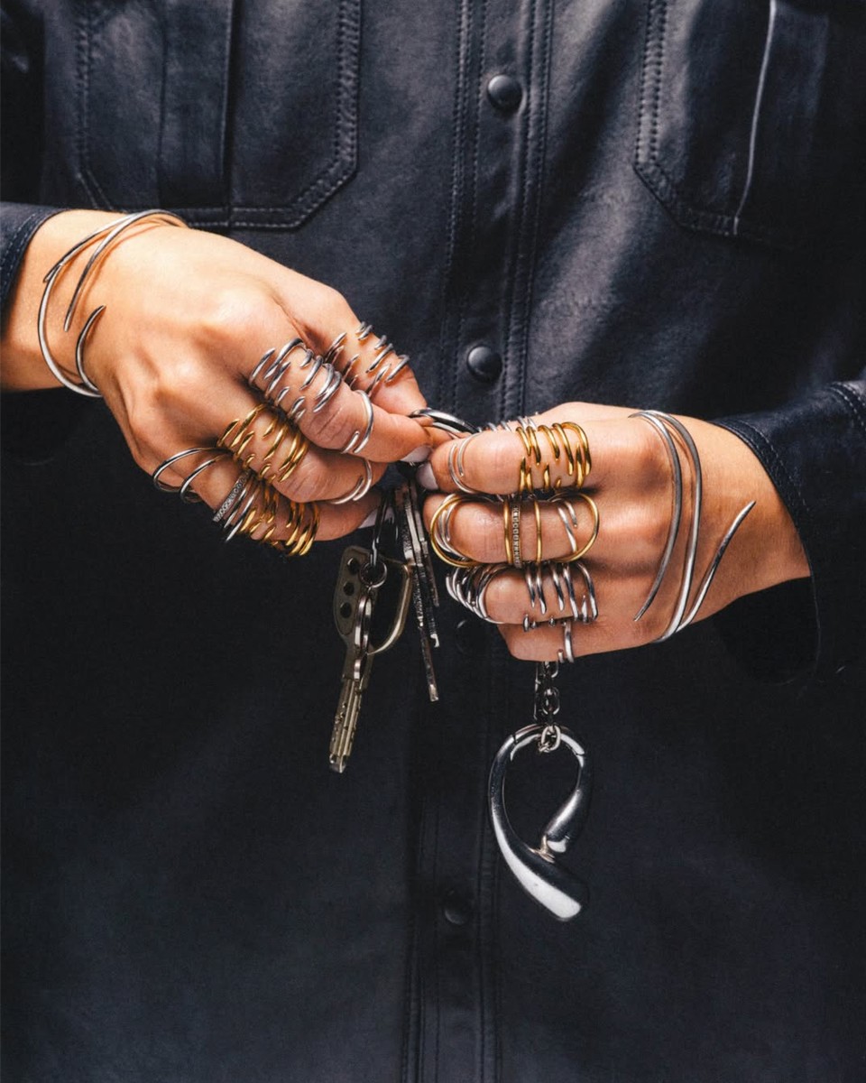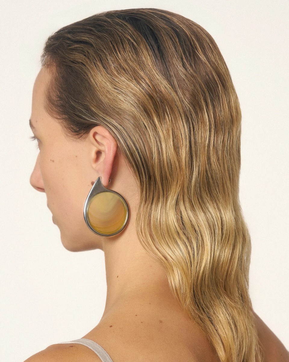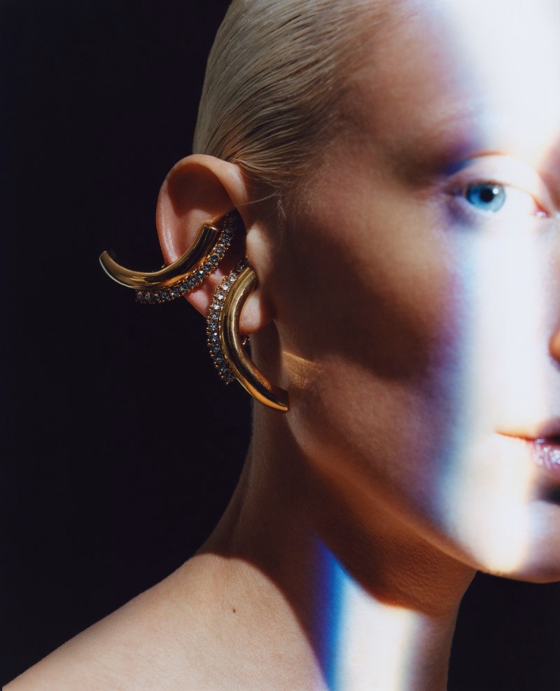 Working with gold-plated metals, natural gemstones, crystals, and mixed-media elements, Panconesi creates jewelry that functions as miniature sculpture. Each piece is designed to move with the body, defined by texture, light, and an expressive sense of individuality. From vibrant hoop earrings to rings reminiscent of unearthed artifacts, his designs transcend decoration, transforming jewelry into wearable art.