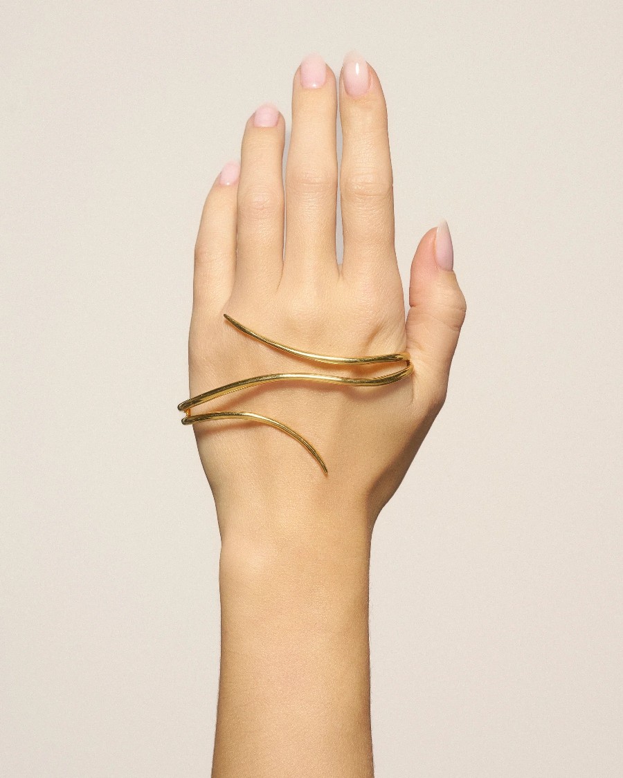 Sculpted metal shapes form voluminous silhouettes that naturally wrap around the body, delivering a bold statement while remaining unexpectedly light and easy to wear.