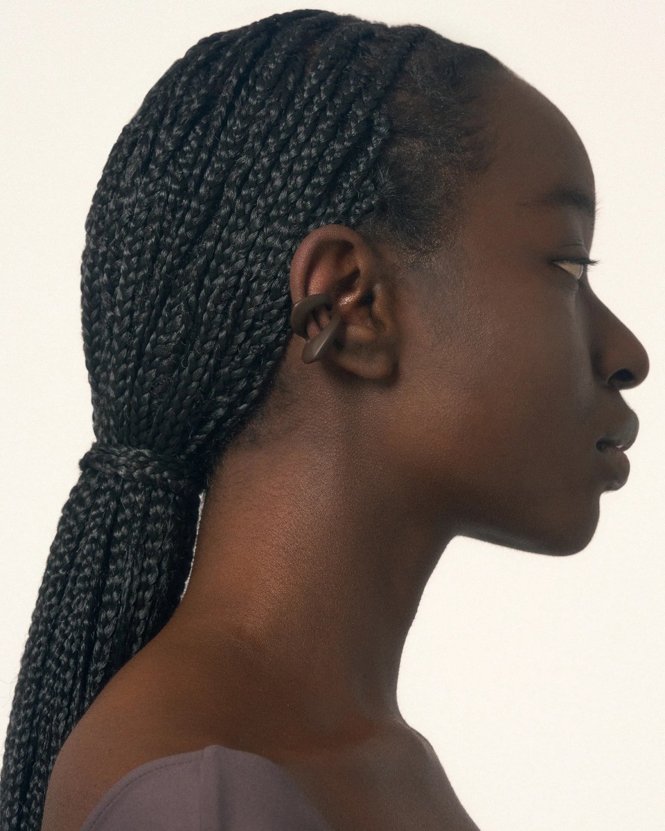 Sculptural metal shapes create voluminous silhouettes that naturally contour the body, balancing striking visual impact with a surprisingly light and comfortable feel.