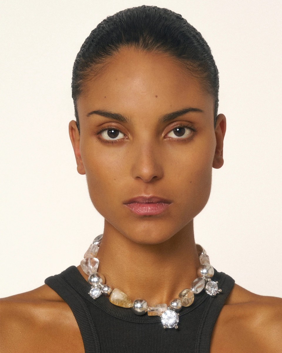 Inspired by the mystery of the night sky, this collection turns jewelry into a luminous arrangement of crystals that drift across the body like a constellation in motion.