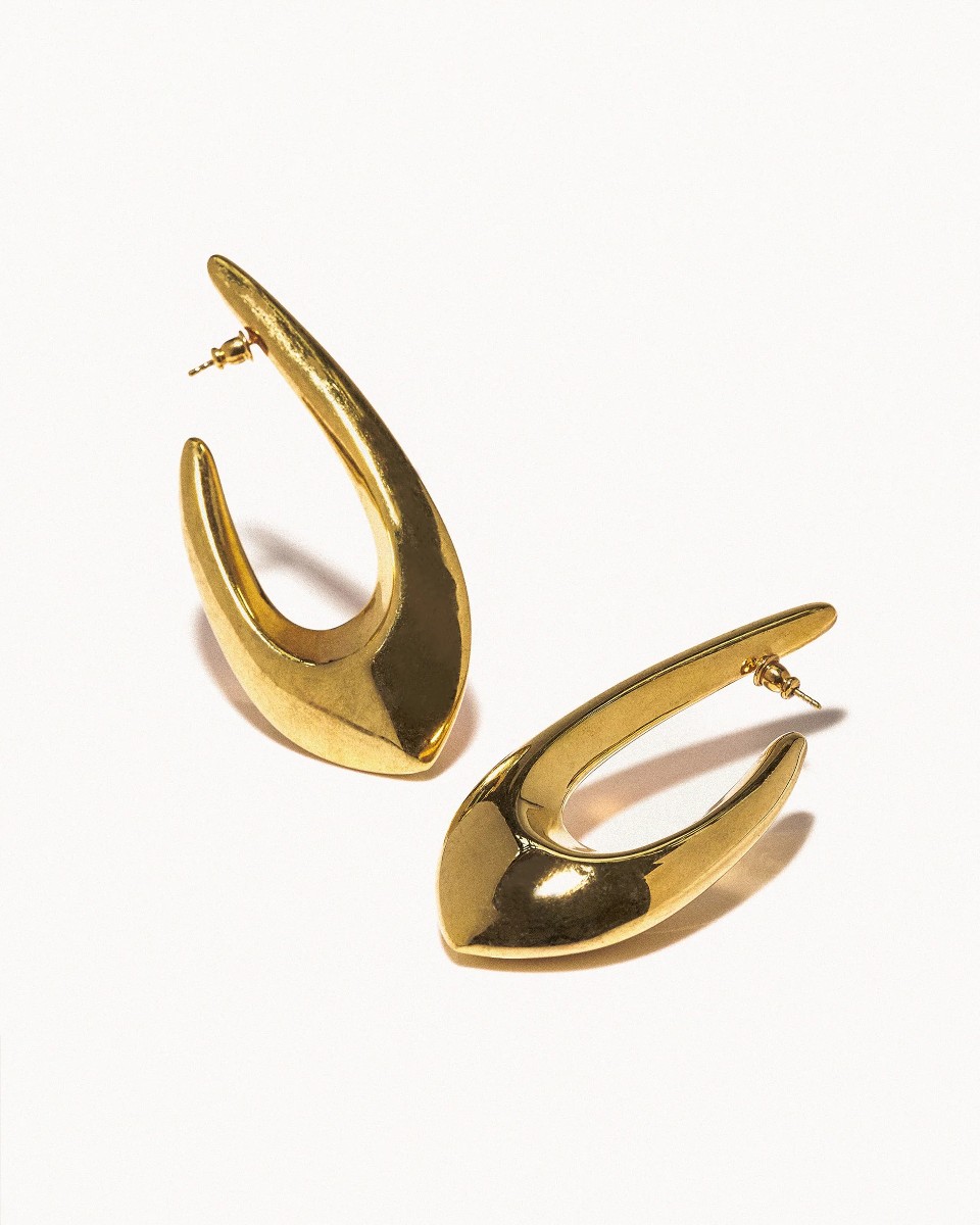 A single fluid line coils into the brand’s signature serpent silhouette, reimagining the classic hoop earring with sculptural volume and a subtly sensual attitude.