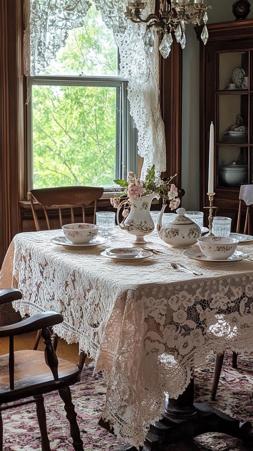 Lace‑trimmed table linens and embroidered napkins elevate routine meals into moments of intentional delight. Even shower curtains and towels once purely functional incorporate lace‑inspired patterns that diffuse light, soften surfaces, and extend texture into spaces often dominated by cold materials.