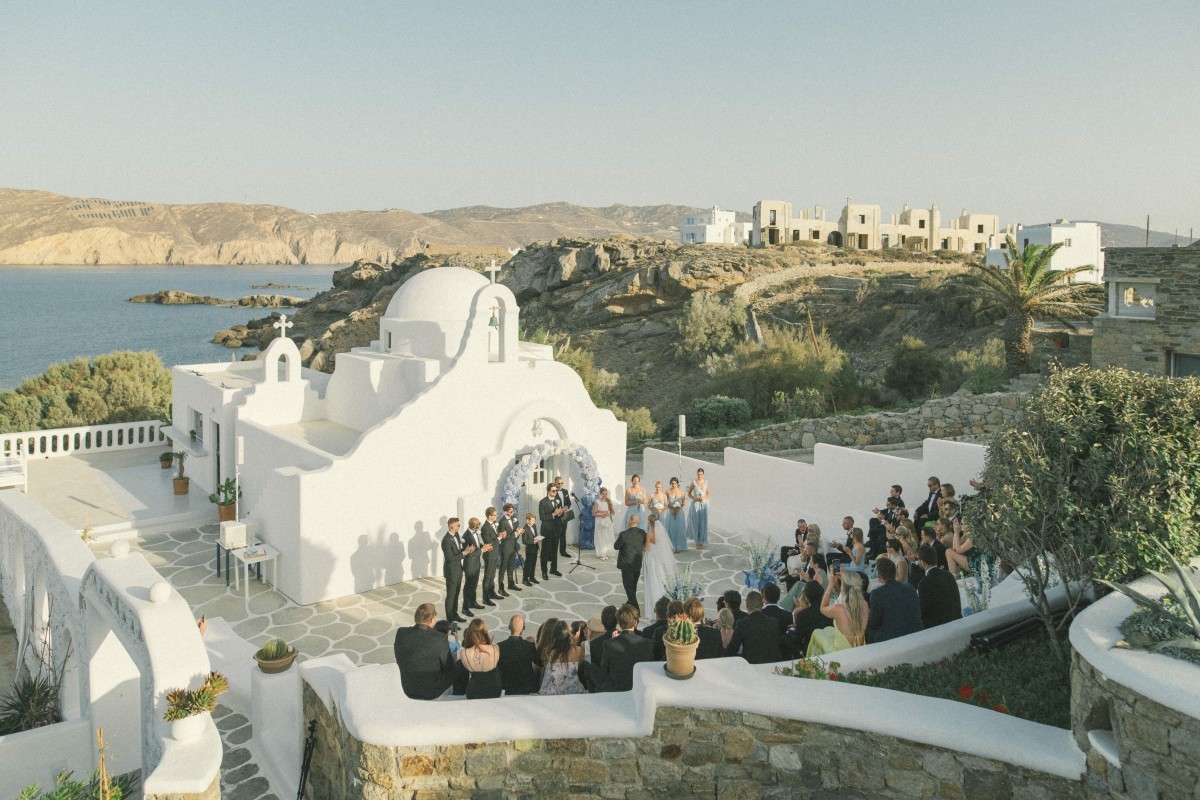 Overlooking the breathtaking waters of Agios Sostis Bay, Mykonos Lolita is an exclusive suite complex offering a refined yet tranquil setting for an unforgettable seaside wedding. Set on one of the world’s most cosmopolitan islands, the property blends privacy, elegance, and natural beauty with effortless ease. Whether hosting a religious or symbolic ceremony, couples can exchange vows at the resort’s intimate chapel, gracefully positioned above the crystal-clear Aegean waters, creating a truly poetic backdrop.