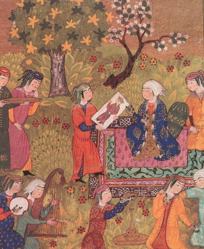 “Shirin Examines Khusraws Portrait”, late 15th century Iran, plate 2, Khamsa of Nizami, Arthur Sackler Gallery, Smithsonian Institution, s1986.140